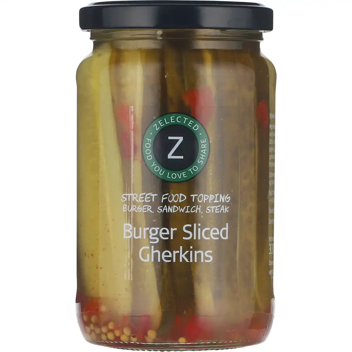 Zelected Burger Sliced Agurker er uundværligt tilbehør til gourmet fastfood. Agurkerne er skåret på den lange led, så det giver en skive med mere bid, sprødhed og et utal af anretningsmuligheder. Lækker topping til din burger, sandwich eller smørrebrød.